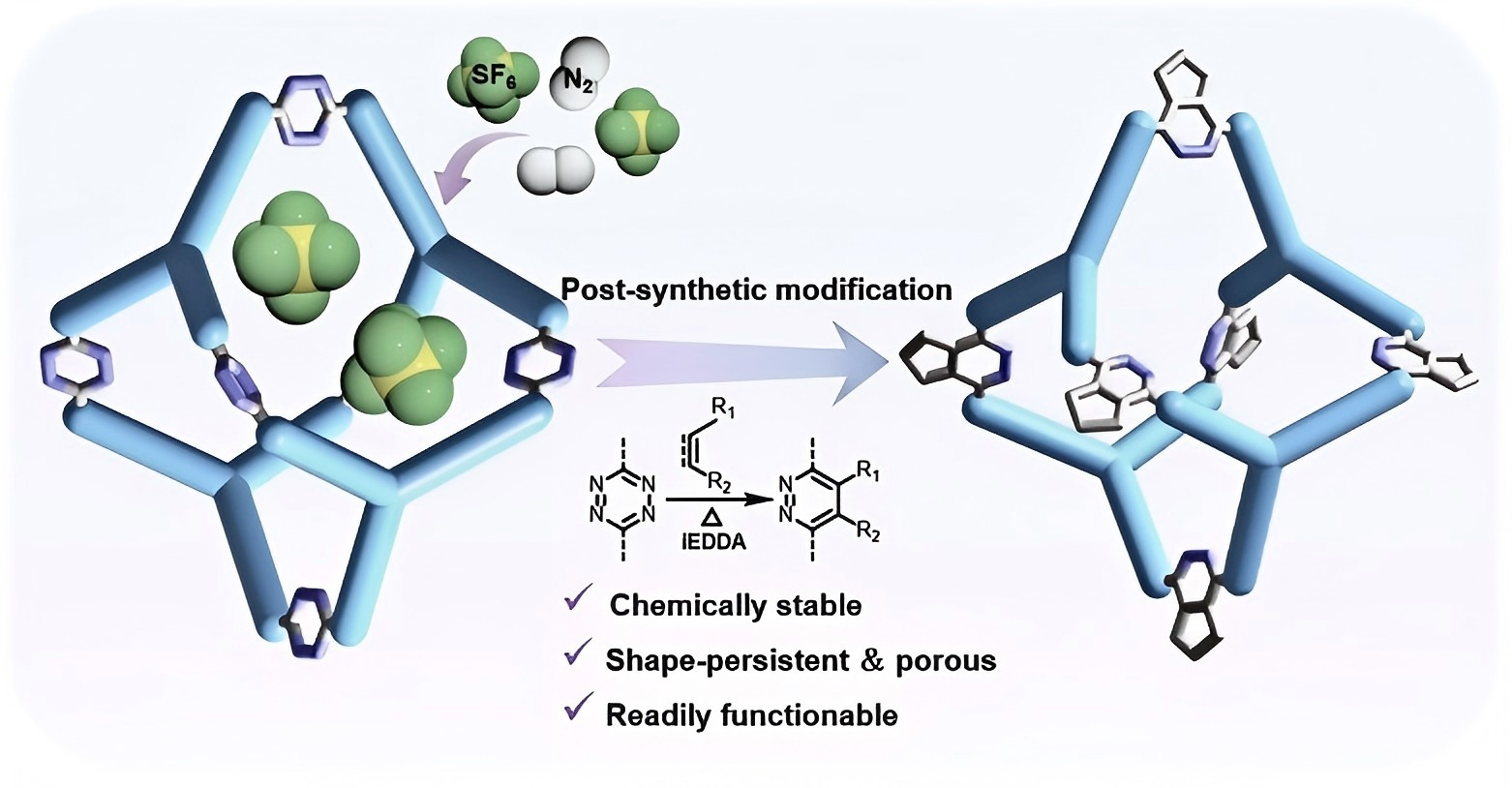 55. J. Yang, S. Yu, W. Zhang, S. Yang, D. Hu, Y. Guan, H. Li, M. Liu*, Chemically Stable Tetrazine-Based Porous Organic Cages with Post-Synthetic Modification via Inverse-Electron-Demand Diels–Alder Reactions for SF6/N2 and CO2/N2 Separation. Angew. Chem. Int. Ed. 2025, e202512561. Doi: 10.1002/anie.202512561 (Link)